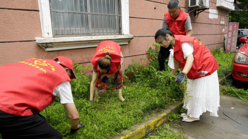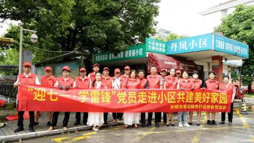 6月30日下午,余姚市颐和公益服务中心、余姚市家庭服务行业协会党支部、杭州苏易士安物业管理有限公司余姚分公司党支部,联合举行一次“迎七一、学雷锋”志愿者走进小区共创美好家园志愿活动,20多名志愿者在颐和公益理事长齐国民的带领下,志愿者们走进凤山街道丹凤小区进行为时两个小区开展绿化环境卫生服务活动 。