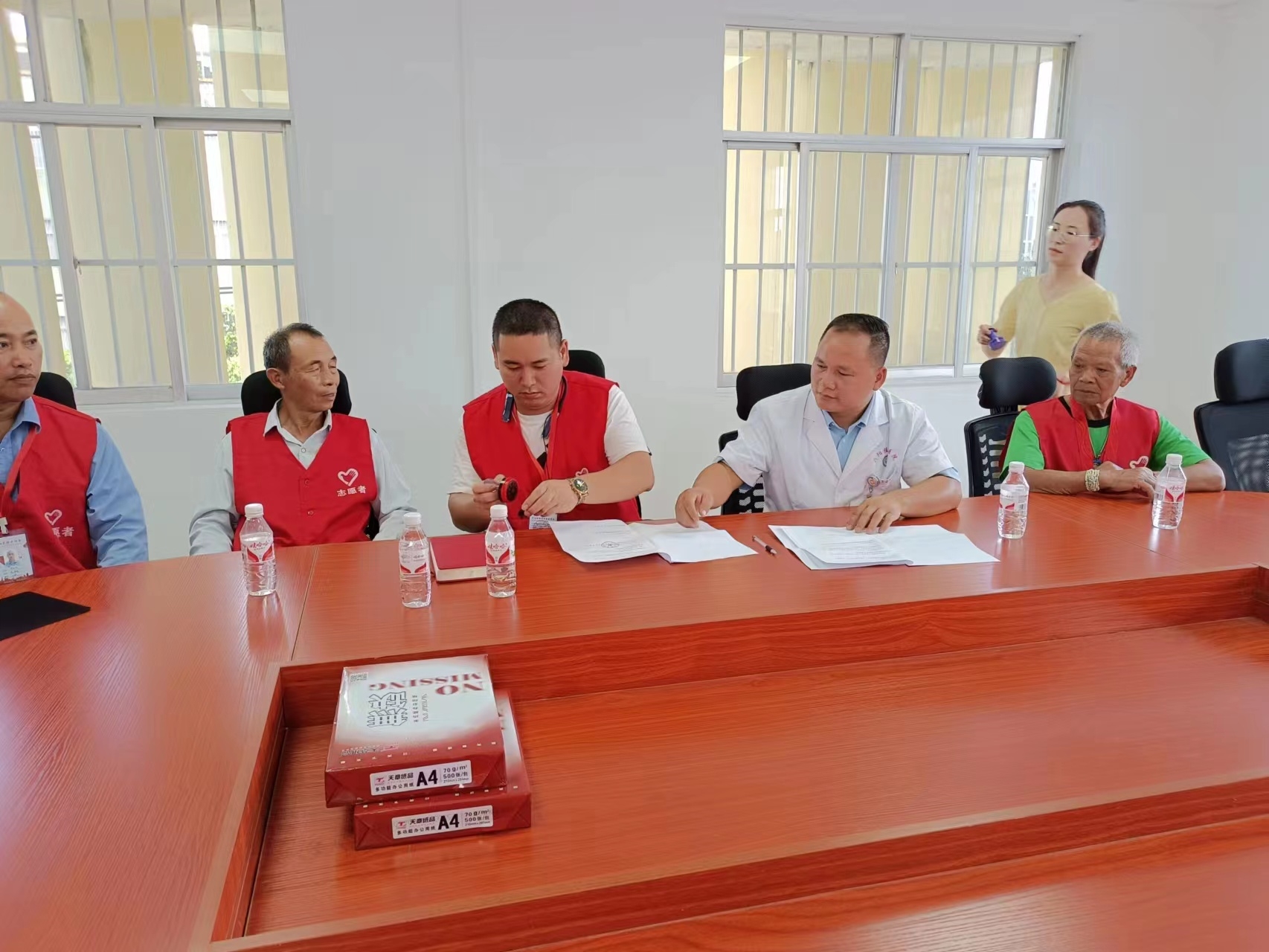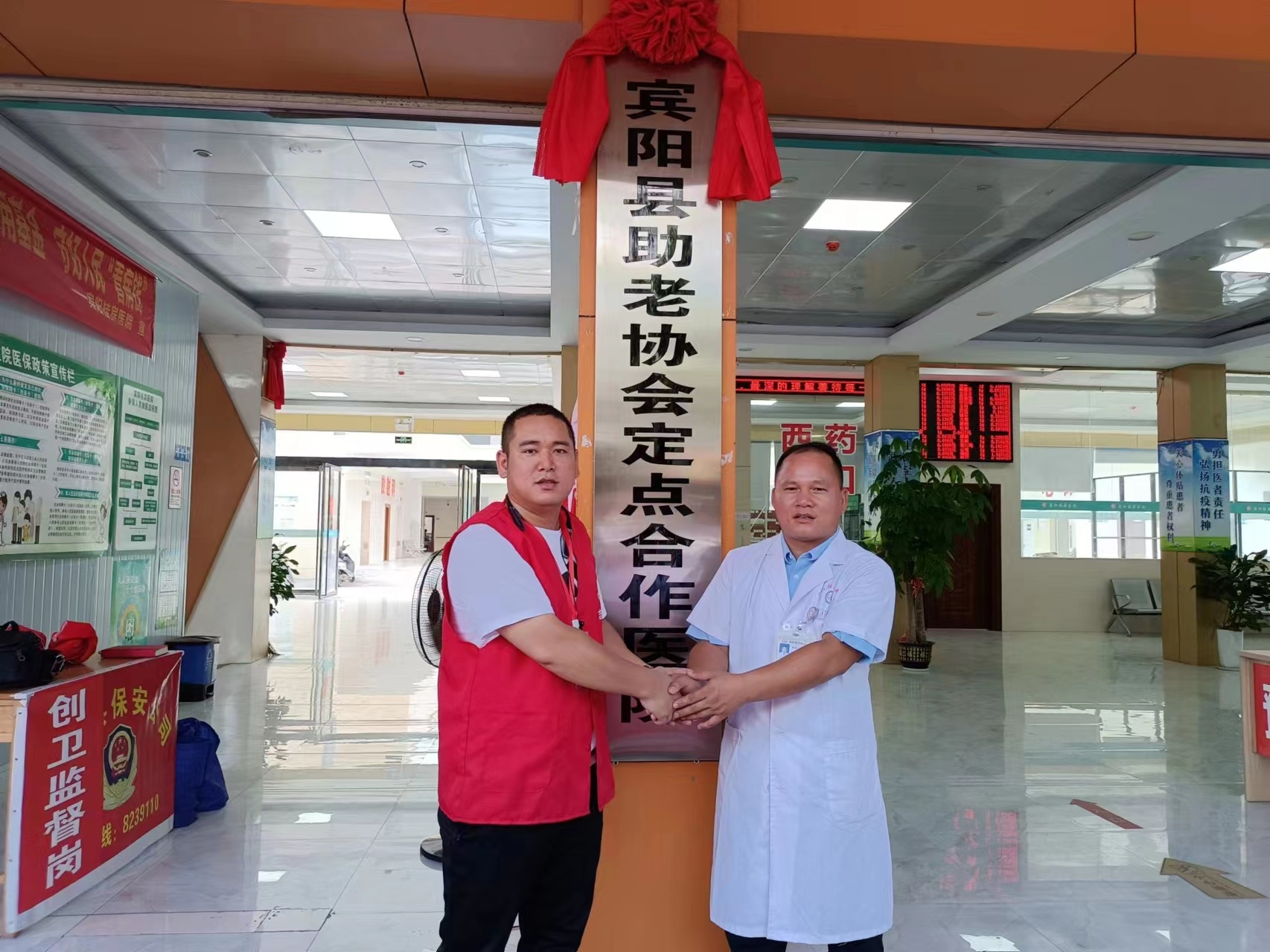 早上10点在宾阳桂宾医院的会议室,宾阳县助老协会理事长:李扬光与宾阳桂宾医院的院长:封安皓,签署合作协议,合作期限10年。