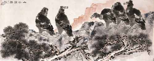 李苦禅 山岳钟英 146×362cm 纸本设色 1961年 北京画院藏 任何艺术家的艺术风格都不能跳出他们所对应的时代,中国近代最大的时代变量便是西方艺术的强力输入,百年巨匠们“筚路蓝缕,以启山林”,用他们的聪明才智在中西融合间开辟出了一条新路,为中国艺术的发展上做出了自己的卓越贡献。 展览展出的“全明星”名单包括(书画篇):齐白石、张大千、徐悲鸿、傅抱石、吴昌硕、黄宾虹、潘天寿、林风眠、李可染、刘海粟、李苦禅、吴作人、蒋兆和、吴冠中、石鲁、关山月、赵望云、叶浅予、黄胄、张仃、溥儒、高剑父、黄君璧、何海霞、董希文、吴湖帆、于非闇、颜伯龙;(书法篇):李叔同、郑诵先、于右任、高二适、沈尹默、赵朴初、林散之、启功、邓散木、沙孟海、柳亚子、郭沫若等40余位艺术大师,罕见的超越时空“合体”。 重点展出包括齐白石《松鹰图》(1个月后撤展)、《聚珍十开册》,张大千《观竹图》、《华山长空栈图》、傅抱石《万竿烟雨》、吴昌硕《芭蕉松梅四条屏》、黄宾虹《宾虹墨妙》、林风眠《品茗》、李可染《清漓风光》《无限风光在险峰》,李苦禅《山岳钟英》、吴作人《熊猫》、《水不在深》、吴冠中《长江万里图》、黄胄《丰乐图》《载歌行》,林散之书法《金顶》、李叔同《半裸女像》等众多名家罕见真迹,不少作品为首次公开展出。