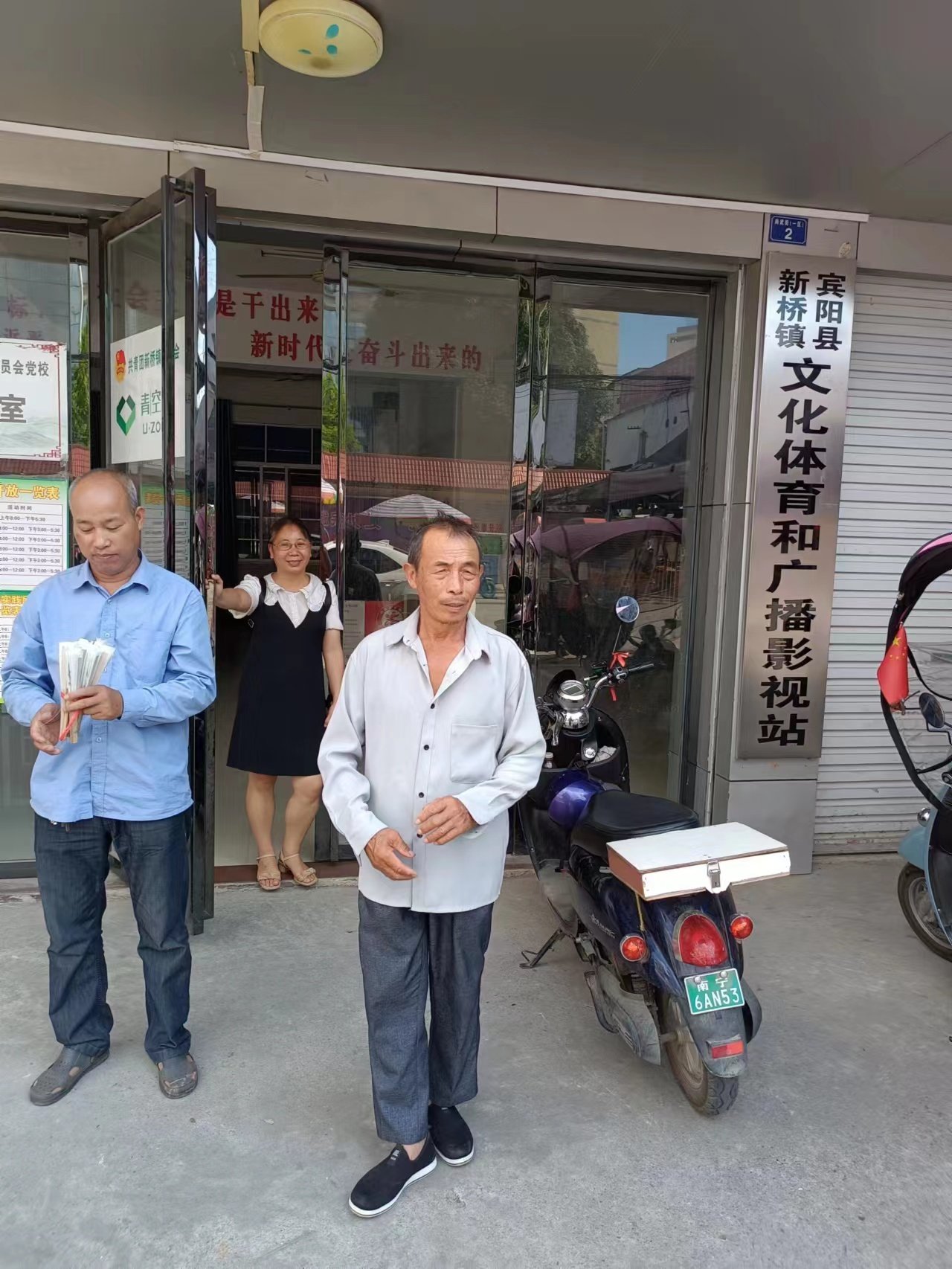 2023年7月5日新桥镇石砍村的村民李扬光向宾阳县文化广电体育和旅游局,宾阳县文化馆,咨询申请非遗项目:纸扇,指导申请流程向新桥镇文化站提交申请,由新桥镇文化站长提交申请材料到宾阳县文化馆。
