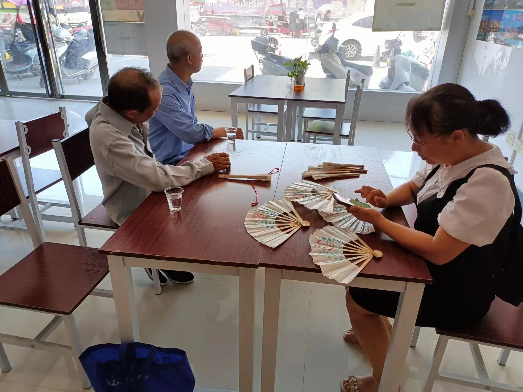 2023年7月10日新桥镇石砍村李扬光向新桥镇文化站申报非遗项目:纸扇。石砍村的李生海,李生凤,李扬光在新桥镇文化站当面向新桥镇文化站长讲诉非遗项目纸扇的制作工艺。