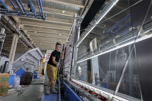 连日来,该玻璃生产流水线的工人铆足干劲,生产热火朝天。这个生产流水线通过闭环工作法提升工作效率,日均生产1000余平方米的玻璃下线供给市场。(迟毓璎 通讯员 韩加君)