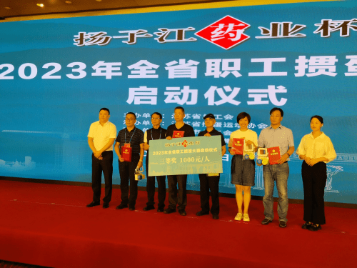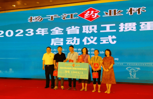 领导和嘉宾为“扬子江药业杯”2023年全省职工掼蛋大赛启动