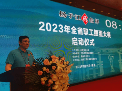 (沈掼曦.文/保村.图) 七月盛夏,万物竞秀。 7月15日,“扬子江药业杯”2023年全省职工掼蛋大赛启动仪式,在南京玄武徐庄软件园隆重举行。本次大赛是由江苏省总工会主办、省掼蛋运动协会承办、泰州市总工会协办、 扬子江药业集团有限公司冠名的重要省级赛事。参加启动仪式的有相关领导、特邀嘉宾;各设区市总工会、省各产业工会(厅、局、企业)分管主席、宣教部长;冠名单位代表、组委会全体成员、省掼蛋协会指派的裁判员、参赛运动员、新闻媒体及工作人员近300人。 江苏省总工会党组书记、副主席徐大勇出席启动仪式并讲话。他说,近年来,省总工会坚持以提高职工素质为目标,以促进职工身心健康为目的,以加强企业文化建设为抓手,积极组织开展各类文体活动,丰富广大职工的精神生活,营造健康良好的发展氛围,推动全省职工文化建设全面发展。掼蛋运动是淮安人民的伟大创造,并成为国家体育总局向全国推广的、唯一有地理标志的智力运动项目,已经列入江苏省运会、省全民健身运动会、省智力运动会的比赛项目。 全省职工掼蛋大赛既为大家搭建了相互交流的平台,也为传承发扬掼蛋运动文化提供了有力支持。全省13个设区市总工会、14个产业工会,300多名裁判员以及运动员、教练员和工作人员将参与本次大赛。希望全体运动员弘扬奥林匹克精神,赛出成绩、赛出水平、赛出团结、赛出风尚;全体工作人员要恪尽职守,密切配合,热心服务,共同将本次比赛办成一个浓重热烈、增进友谊的体育盛会、人文盛会,通过本次比赛吸引更多的职工群众参与到掼蛋赛事活动中来,共同将同心协力、敢于担当、一往无前、勇争第一的掼蛋精神融入到工作和生活中去,共同享受智力运动带来的精彩和乐趣。国运兴则体育兴、体育强则中国强。希望全省广大职工发扬自强不息的精神,争取运动成绩和工作业绩双丰收,更好的展现江苏职工的良好形象。