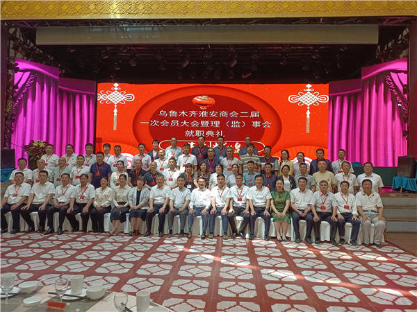 2023年7月16日上午,乌鲁木齐淮安商会第二届理(监)事会就职典礼大会,在乌鲁木齐市天山区二道桥美食歌舞大剧院4楼宴会厅如期举行。会场内外布置的庄严降重,大气磅礴,焕然一新! 10;50时许,主持人宣布:全体起立,高唱国歌。会议在雄壮的国歌声中隆重开幕。
