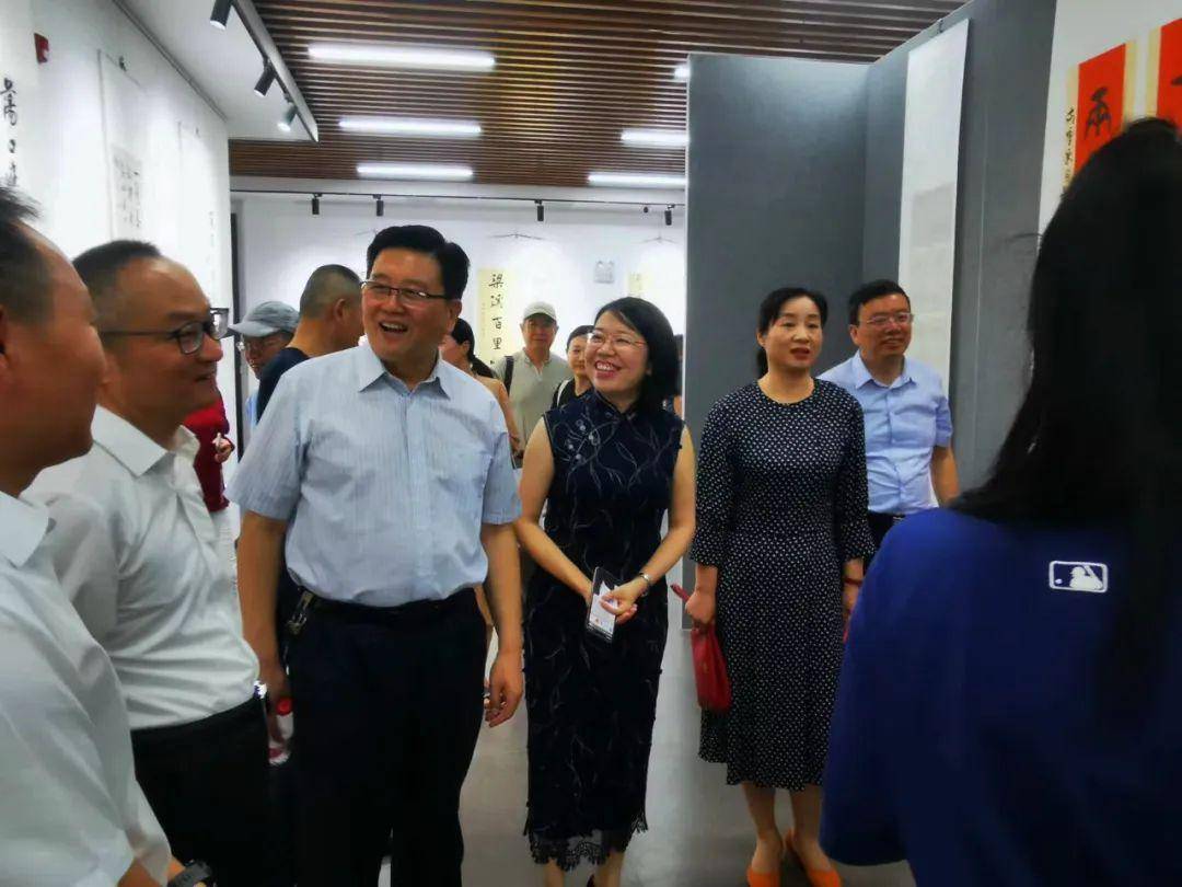 梁溪区委宣传部常务副部长孙晓娜、锡山区委宣传部副部长蒋盛向梁溪书协、诗词协会、锡山书协、诗词(楹联)学会代表赠送本次展览作品集,并合影留念。