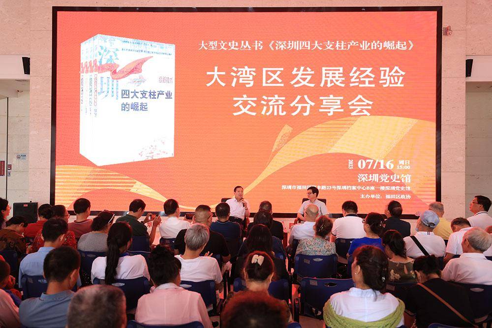分享会现场。(图片由主办方提供) 《深圳四大支柱产业的崛起》由深圳市政协联合深圳市有关部门共同征编,于2010年由中国文史出版社出版发行。这套丛书系统地总结了深圳市发展四大支柱产业进程中积累的创新与实践经验。全书用鲜活的笔触,再现了一百三十余位为深圳高新科技产业、文化产业、金融产业、物流产业四大支柱产业的发展,作出杰出贡献的领导、专家学者、企业家。“亲历、亲闻、亲见”的回忆记述,为后来者留下了宝贵的精神财富,为未来各大产业高质量发展提供翔实的历史依据,也为深圳贡献了极具价值的文史资料。
