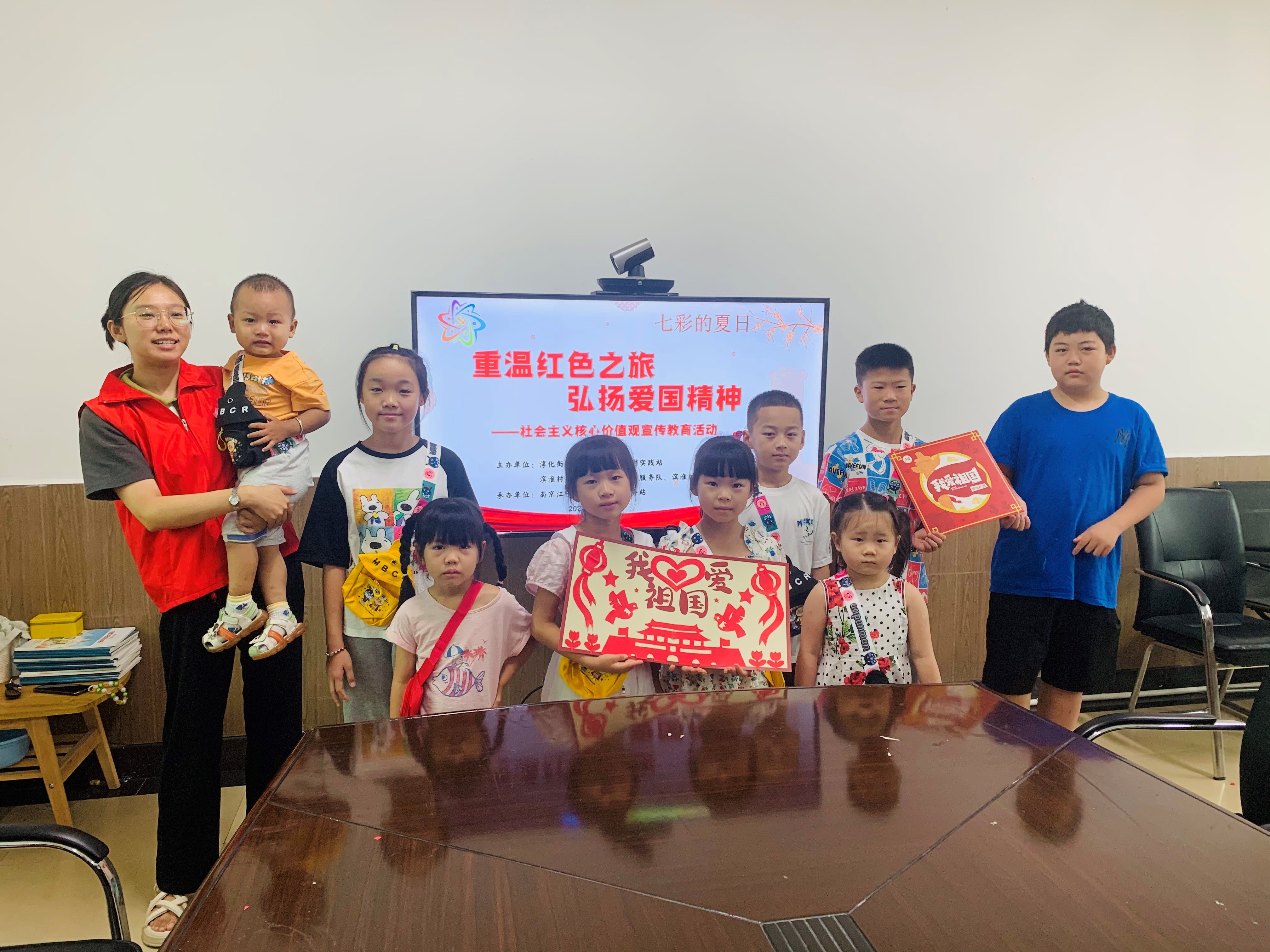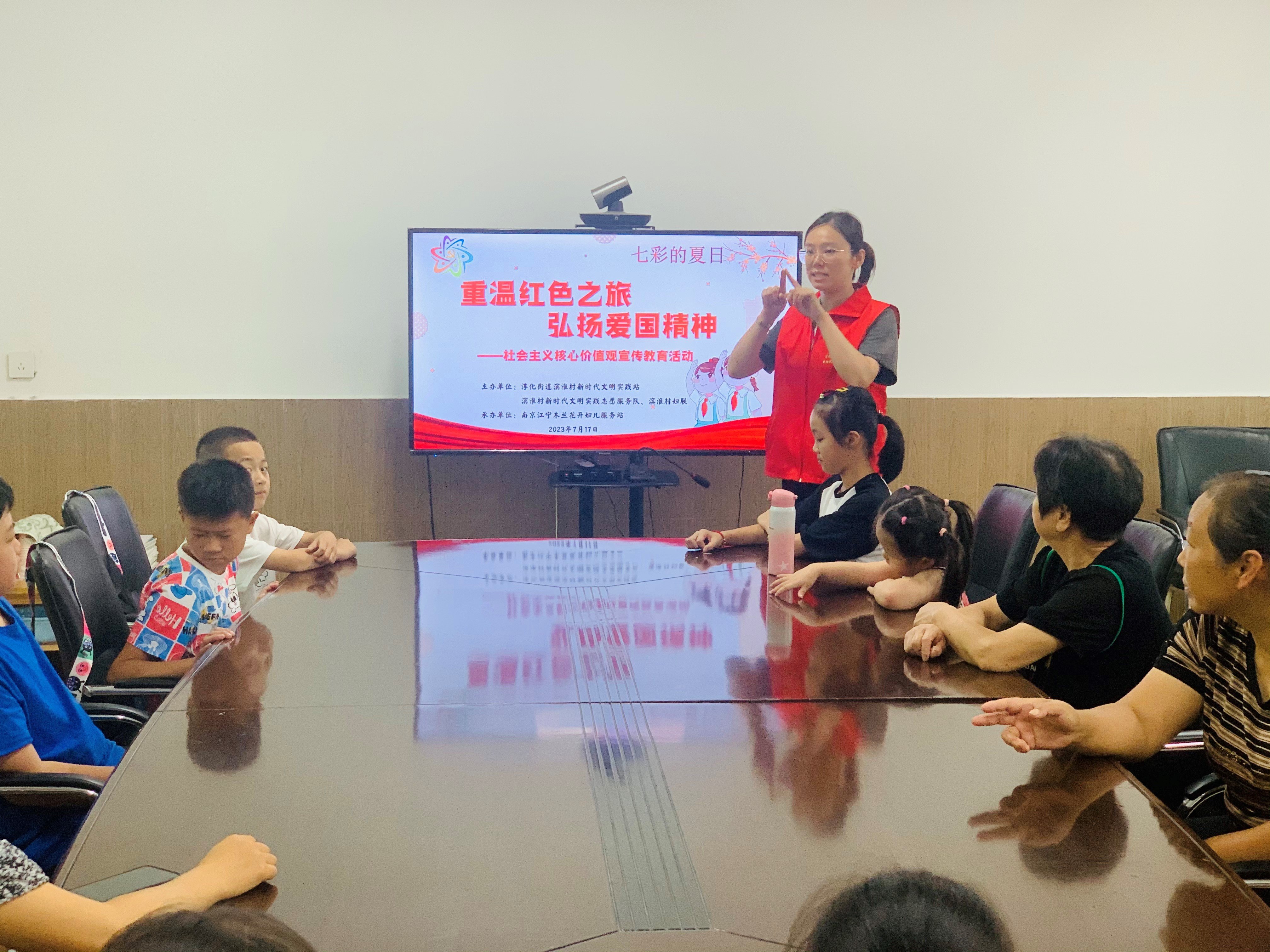 为培育和践行社会主义核心价值,激发社区青少年爱党爱国情怀。7月17日上午,江宁区淳化街道滨淮村新时代文明实践站、妇联、计生协联合木兰花开妇儿服务站开展了“重温红色之旅 弘扬爱国精神”社会主义核心价值观宣传教育活动。