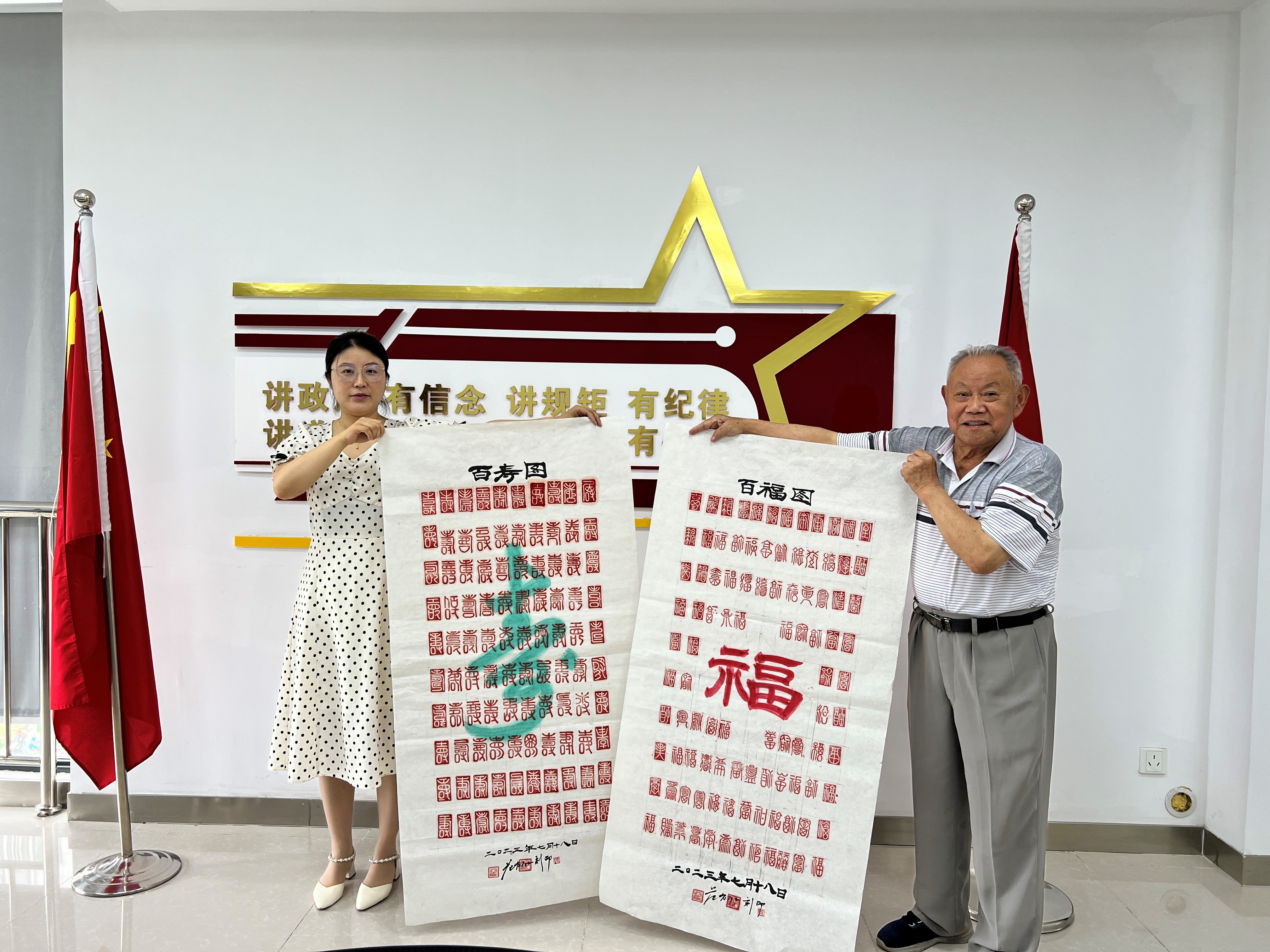 ![]() 7月18日,为感谢永丰社区党组织对老党员的慰问关怀,范有仁特地向社区党组织献上两幅亲笔拓印画。他谦虚地说:“炎炎夏日,党组织特地到家中慰问,话话家常,让我深深感受到党的关怀和温暖,心怀感恩。作为老党员,我将进一步坚定对党的信念,继续发挥余热,通过自己亲手创作的作品点亮历史的记忆,希望可以尽我所能,表达我对党的一份热忱。” ![]() |