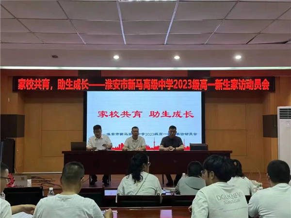 淮安市新马高中为让高一新生及家长及早了解该校的办学理念和教育教学情况、增强家校联系,形成家校良性互动,在2023级高一新生报到后就以两大举措着手家校共育工作。 第一个举措:召开高一新生家长会 7月8日下午,新马学校召开了高一新生家长会。