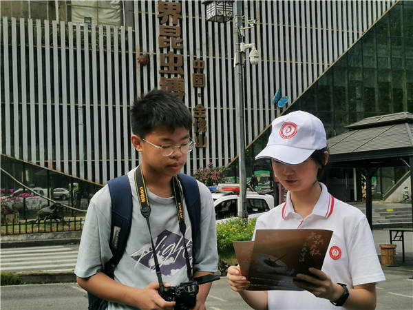 为深入推进“重庆市知识产权文化教育传播基地建设试点项目”工作,大力弘扬“尊重知识、崇尚创新、诚信守法、公平竞争”的知识产权文化,7月16日,道南中学组织“科普之光”社团成员前往南川金佛山游客中心、天星小镇,开展知识产权文化宣传活动。