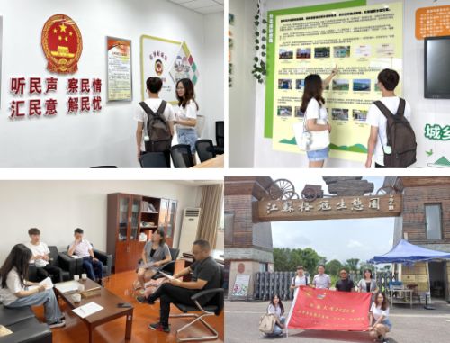 走访参观环节,实践团队依次参观了江苏省“城市生活垃圾分类科普教育基地”—盘城街道垃圾分类宣教馆及分类垃圾集中转运点、“红润盘城”落桥印象红色网格驿站,亲身体会网格治理、医疗卫生、法律咨询、青年就业指导等多项服务,了解“水美乡村”建设情况,并走访江苏格冠集团,调研户外休闲观光、农耕文化展示、农副产品展销、果蔬种植采摘等方面发展模式。