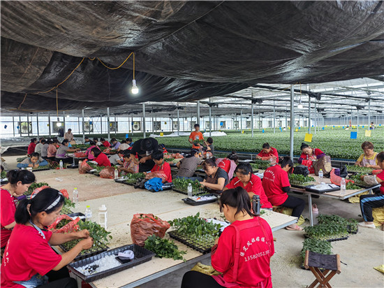 走进位于青州何官镇的山东鑫润青农业科技有限公司,前来购买种苗的农户络绎不绝,育苗大棚里,一排排幼苗长势喜人。30多个工人坐在摆满了育苗盘的育苗床中,熟练地进行育苗嫁接。已经完成嫁接的幼苗排列整齐,长势喜人。山东鑫润青负责人崔光慧介绍:“再过十几天,这些嫁接苗就可以移栽下地,它们的质量稳定,成苗更健壮。”
