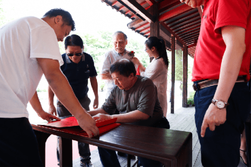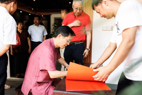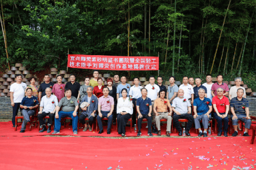 “太湖烟波文人相叙,紫砂禅韵书画辉映。”7月24日上午,由宜兴卿荧紫砂明鉴书画院、全国轻工技术能手刘卿荧创作基地、湖北破山僧文化传媒有限公司、黄梅隐庐(明鉴工作室)主办,“品宜兴”自媒体、黑龙江省陶瓷行业协会、宜兴云泉紫砂文化有限公司、江苏丰玉文化传媒有限公司承办,宜兴市演讲与口才协会、宜兴市阳羡古琴社等协办的“宜兴卿荧紫砂明鉴书画院暨全国轻工技术能手刘卿荧创作基地揭牌仪式”在位于宜兴市丁蜀镇洑东大港村的卿荧紫砂明鉴书画院内举行。