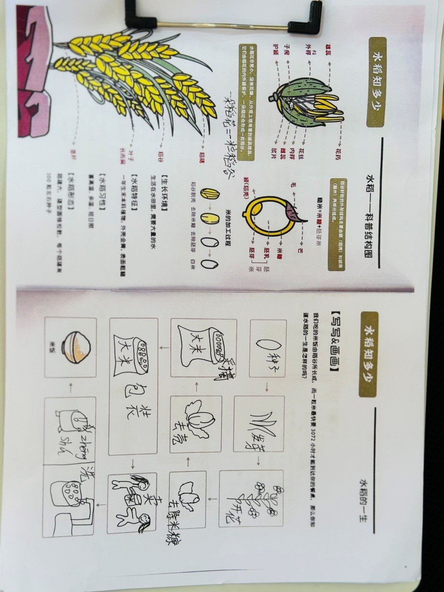 除了对水稻以及农具的科普,志愿者老师还介绍了二十四节气农耕自然的关系,结合线格教导大家插秧的季节与注意事项。小麦和水稻的区别以及它们分别能做出什么美食,更是让大家陷入激烈地讨论,一片热闹。