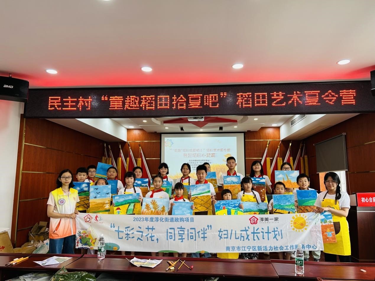 为激发社区儿童的创造力和想象力,2023年7月26日上午,民主村新时代文明实践站和关工委联合新活力社会工作服务中心开展“‘童趣’稻田拾夏吧”稻田艺术夏令营第一期活动,主题为我是稻田小梵高,让孩子们以画笔赋予“稻子”生命,用艺术创作回馈自然。
