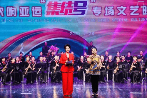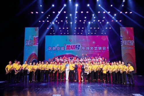 我爱杭州.喜迎亚运!7月28日晚,2023萧山区管乐协会“吹响亚运集结号专场文艺晚会”在杭州萧山剧院举行。七月的酷暑,却阻挡不住观众的热情,纷纷前来观赏这场高雅艺术的视觉盛宴。 晚会在萨克斯合奏《中国,中国,鲜红的太阳永不落》雄壮的乐曲声中拉开序幕。历时九十多分钟,演员们先后表演了萨克斯合奏、独奏、二重奏、舞台走秀、杨氏、陈氏太极拳、现代舞、独唱、表演唱、大合唱等近20个节目。晚会中场穿插了具有迎亚运主体元素的《亚洲雄风》表演唱,当观众听到久违的美妙旋律时,现场热情瞬间燃炸。