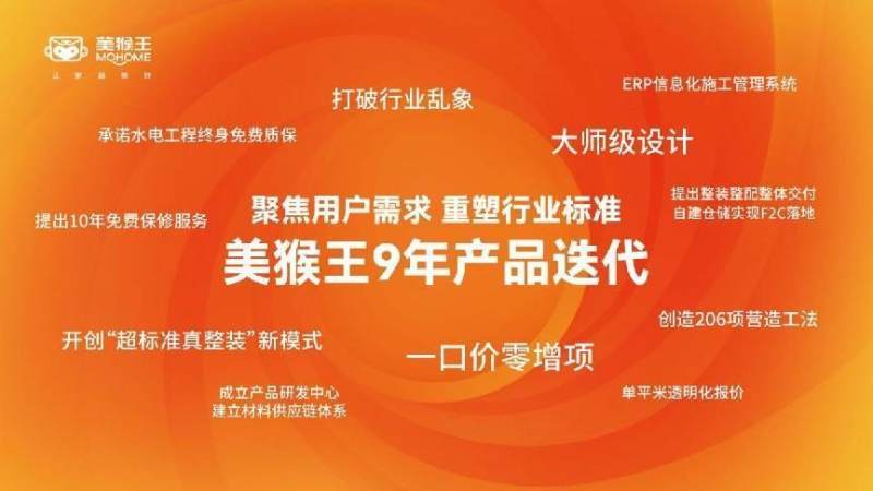 美猴王总裁王锁总产品发布说:“装修作为一个服务性极强的行业,所以要让客户满意首先就要解决用户需求。装修有很多关键的环节,无论是在最开始的装修报价、设计规划,还是整个装修全链路的每个细节工艺,到装修完成后所有的产品质量、消费、售后是否都能达到消费的预期。美猴王会在各个环节建立非常体系化的标准,并将会每一步的标准作为管理工具进行过程监控,设计师、项目管家、工人、监理服务人员的工资收入消费者说了算,只有做到这样才能达到客户的预期。” “整装在行业内已经不是新鲜事,但是真正能落地整装的公司却少之又少。整装是对一个公司整合力、产品力、交付能力的综合挑战,美猴王家装9周年之际,在产品端、设计端、施工端,展示端以及供应链端,端端升级,环环相扣,6.0产品迭代升级美猴王第6次革命性产品,超越了我们对整体家装的定义,它聚焦服务,以“超标准 真整装”开创超标准真整装 6.0全配套服务让装修变简单,真正实现拎包入住“超标准,真整装”是美猴王整装产品的定位,重新整合供应链,材料全线升级一线大牌,北京知名设计师团队合力设计研发,提供家装、精装、软装、全屋定制、大宅别墅等一站式品质装修服务,解决装修“高价低质”的痛点。 “超标准 真整装”美猴王整装6.0是升级也是变革 “超标准,真整装”是美猴王整装产品的定位,美猴王主要在装修环节的关键点-报价、设计、材料、施工、售后五个方面进行标准化规范,并提出高于行业标准的要求来整合产品,基于装修用户的痛点给到产品解决方案。我们对装修用户进行了长达9年的研究,这些发现都体现在美猴王新品方方面面的细节中。