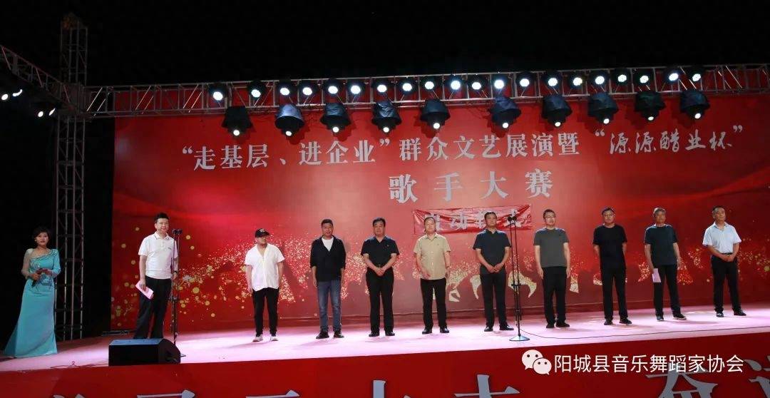 “走基层、进企业”群众文艺展演暨阳城县“源源醋业杯”歌手大奖赛昨晚隆重启动为围绕县委县政府提出的“一个统筹两手抓”的中心工作,活跃群众文化生活,带动夜色经济发展和推进全县精神文明建设,助力“全国文明城市”创建取得圆满成功,8月10日晚,芦苇河畔原庄村龙湾碧园“五季南山”游乐园,人声鼎沸,灯火通明,热闹非凡,由阳城县音乐舞蹈家协会承办、源源醋业有限公司、皇城相府酒业有限公司协办的“走基层、进企业”群众文艺展演暨“源源醋业杯”歌手大奖赛启动仪式在这里隆重启动。
