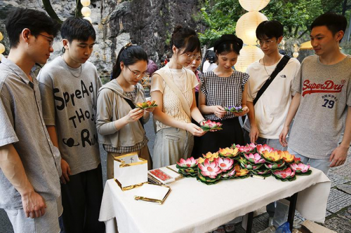 在音乐吧附近,正举办一场“宋韵七夕•缘定福地”永嘉县大若岩宋文化节,员工们带着子女饶有兴趣体味这场韵味浓厚的宋文化节。她们三五成群,有的驻足观看街上不时走过来的“宋人”;有的提着小灯笼拍照留念;有的拉着祈福条细细品味;有的被漂亮的画石深深吸引;还有的在街头亲自体验一下切柠檬的技艺......秋天的细雨在淅淅沥沥的下着,但员工们依然热情不减,冒雨徜徉在宋文化中流连忘返,感受其无穷的魅力!(建行浙江省温州永嘉支行 张俊杰) |