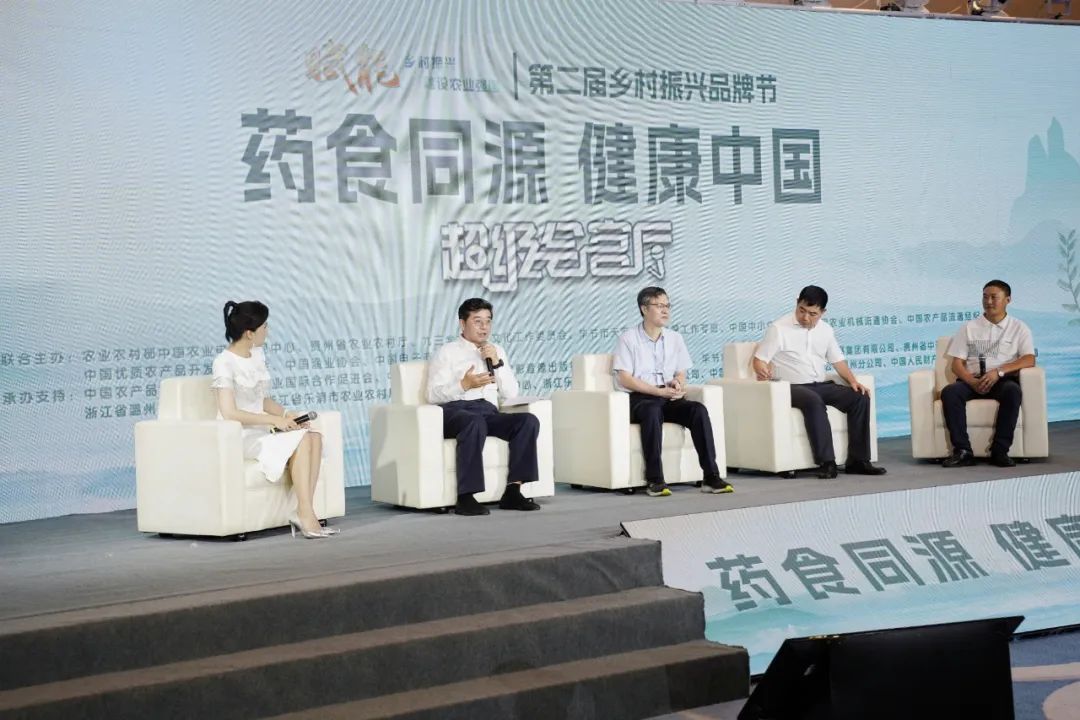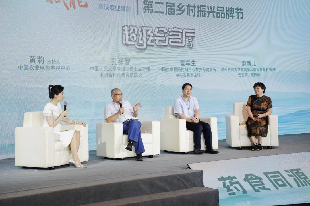![]() ![]() 专家大咖齐聚超级会客厅,共话药食同源高质量发展。浙江省乐清市农业农村局局长谢忠辉、四川省内江市东兴区副区长李可为、乐陵市农业农村局副局长李万国,分别就打造当地特色产业的做法经验展开交流讨论。 ![]() 中国人民大学教授、博士生导师、中国合作社研究院院长孔祥智,中国疾病预防控制中心营养与健康所中心实验室主任霍军生,温州医科大学附属第二医院营养科副主任医师、营养师赵新儿,分别就健康中国战略下药食同源如何注入新动能,药食同源推动健康产业发展热点问题,膳食营养产业全产业链的产学研用协同创新,药食同源在慢性病预防中发挥作用等话题展开交流讨论。 ![]()