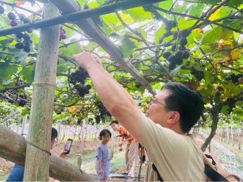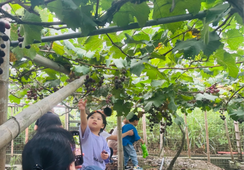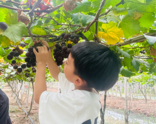 “一城一江一非遗,一果一饼一美食”。员工及孩子们漫步在这座千年古城,感受这座前年古城在历经沧海桑田后的历史沉淀,孩子们对这古老的一切都感到好奇,尽情释放着天性,玩着、闹着、学着…。 随后,前往大棚采摘葡萄,刚下过一场小雨,葡萄的枝叶显得尤为翠绿,一颗颗葡萄像穿成串的硕大的珍珠,晶莹透亮,沉甸甸地坠在藤子上。员工及孩子们通过采摘葡萄,体验到采摘活动的快乐和劳动的艰辛、丰收的喜悦。