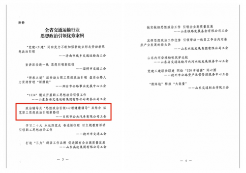 日前,山东省交通工会委员会发布《关于全省交通运输行业职工思想政治引领优秀案例的通报》,日照市公共汽车有限公司所报送的《政治辅导员“思想政治引领+心理健康辅导”双结合 拓宽职工思想政治引领新路径》案例荣获“山东省交通运输行业职工思想政治引领优秀案例”。