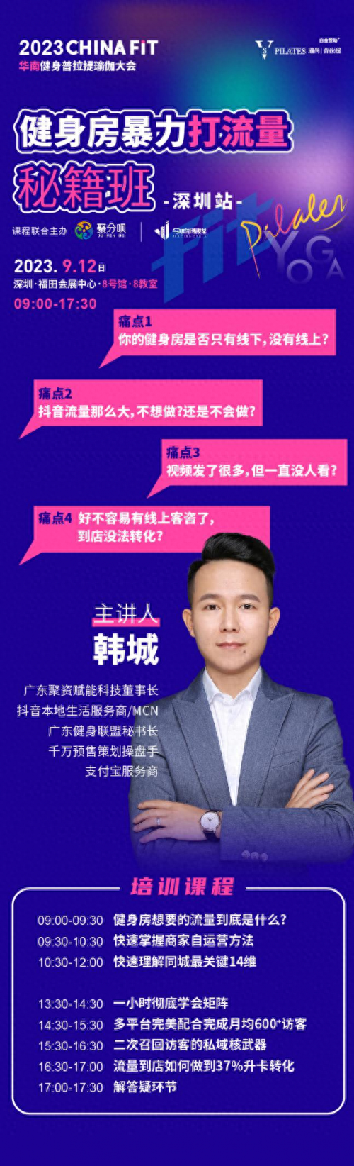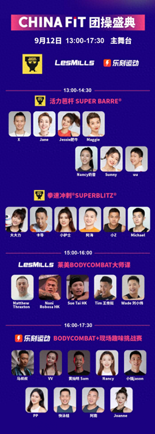 ![]() 主舞台 第一天 开幕式/论坛/报告 09:30-10:00 开幕式 领导致辞/嘉宾致辞 10:00-10:40 CVC华南区联席会议机制启动仪式/主题报告 10:40-11:40 必确-后疫情时代健身馆未来圆桌论坛 12:00-13:15 欢迎午宴 11:45-13:00 昢色POSE杯运动时尚选美大赛 13:30-15:30 月付费是大势所趋?还是势在必行? 15:30-17:30 乔山-健身房如何获得高效营收? ![]() 主舞台 第二天 报告/论坛 09:00-10:00 私教工作室主题报告 10:00-11:00 工作室论坛 11:00-12:00 普拉提瑜伽主题报告 12:00-12:30 普拉提瑜伽论坛 ![]() CVC联席会议机制启动仪式 10:00-10:40 CVC华南区联席会议机制启动仪式/主题报告 ![]() 健身房暴力打流量秘籍班 ![]() 首届普拉提孕产峰会 ![]() 拳馆经营交流大会 ![]() 俱乐部游学 ![]() 昢色POSE杯运动时尚选美大赛 ![]() CHINAFIT团操盛典 ![]() 8间教室百节课程 ![]() |