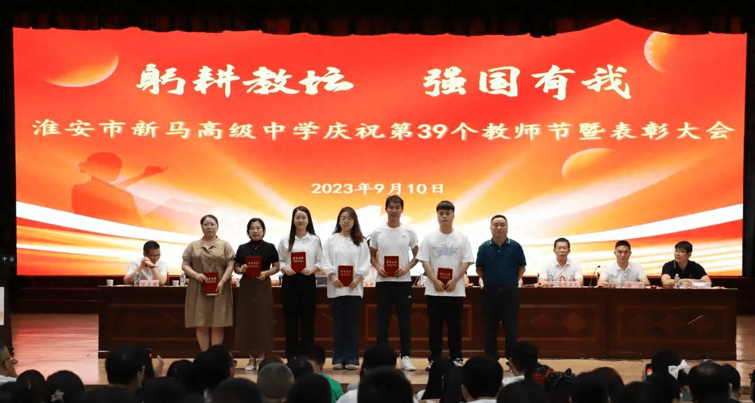 9月10日下午,淮安市新马高中开了一次别开生面的庆祝教师节大会。这次大会围绕“躬耕教坛强国有我”主题,既是庆祝会,又是表彰会和学习会。