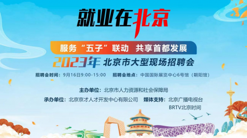 服务“五子”联动 共享首都发展 2023年北京市大型现场招聘会再度盛大启幕! 本次招聘汇聚优质企业200家,提供就业岗位1万余个,采取“现场招聘+直播带岗+走播宣岗+线上云聘”的全媒体招聘模式,为广大求职者和用人单位搭建供需精准对接平台。 设置现场九大招聘专区,提供多层次岗位信息,满足求职者不同需求。 国企及事业单位、专精特新、两区建设、科创企业、数字经济、博士后设站单位、生活性服务业、京津冀、新两翼 国家星级职业指导师坐镇现场,免费为求职者简历诊断、面试指导、职业规划等不同主题的分类职业指导服务。 无法亲临现场怎么办? 9月16日上午10点至12点,您可通过“就业在北京”视频号、北京时间APP首页“就等你来”专区观看本场招聘会直播。会后,还将开启为期两周的云端招聘,求职者可通过“就业在北京”微信公众号、北京时间APP继续查看企业招聘信息。 会后如何线上投简历? 招聘会后,求职者可在北京时间APP首页“就等你来”专区,及“就业在北京”微信公众号了解岗位信息和简历投递方式。 |