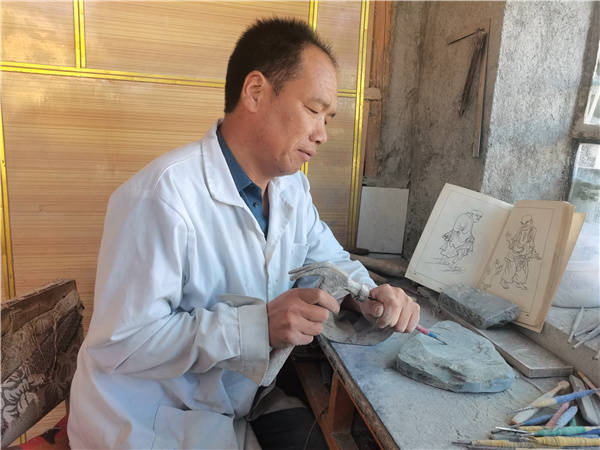 郭栓科先生从事洮砚雕刻行业30多年。2011年曾在兰州品砚堂,跟随陈平红学习洮砚雕刻技艺,擅长雕刻龙凤、山水、人物等。 2012年11月作品《飞天》获第十二届甘肃省工艺美术百花奖制作技艺优秀奖。2014年9月作品《福在眼前》获第十三届甘肃省工艺美术百花奖创作创新三等奖。 2015年8月至2015年9月,在西北名族大学中国非遗传承人群培训班培训,后成立自己的洮砚作坊。 祝郭栓科先生事业有成,为弘扬洮砚工艺创作出新的作品,为弘扬中华优秀传统文化做出更大贡献! (编辑/报道:朱长云)
