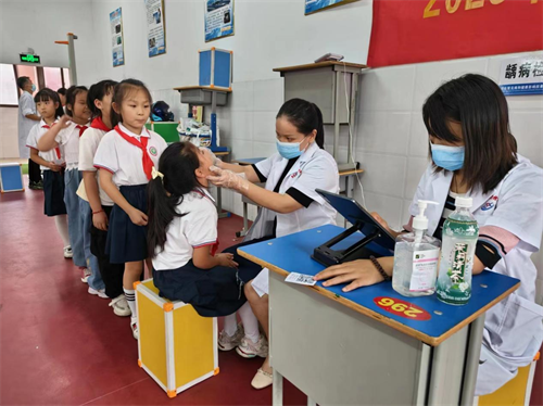 医生通过科学监测学生常见病和生长发育情况,掌握并反馈学生近视、龋齿、脊柱侧弯、肥胖、营养不良等主要常见病情况和影响健康的主要因素。特别是针对视力监测,医生认真细致地对每位学生进行检查检测,此次视力筛查充分利用信息化技术手段,筛查人员进行屈光及远视力检测,实现数据自动上传,并通过大数据分析及时了解班级、学校的儿童青少年视力情况,为制定、出台学生近视综合防控措施提供了数据支撑。同时,也让每一个受检学生及时了解掌握了本人的视力状况,提升了学生视力保护意识。