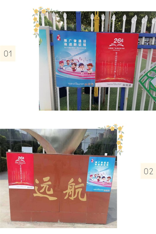 学校通过开展升旗仪式、小手拉大手、宣传标语、主题班会、手抄报等向全体师生发出倡议,号召每一位同学说好普通话,使普通话成为校园用语,做新时代的推普员,让校园的每一个角落时时响彻普通话优美的声音,让讲普通话成为校园最美丽的一道风景。