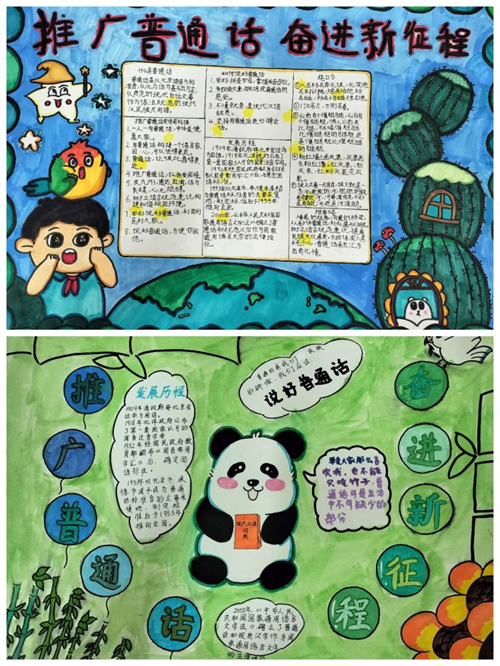 六年级开展了手抄报比赛,以笔宣传,用心飞扬,孩子们将推普知识生动形象地展示在画纸上,用五彩的画笔勾勒奋进的蓝图,在一笔一画里传递说好普通话、写好规范字的热情。每份手抄报和作文都凝聚了同学们最真挚的情感,用自己的行动来践行推普使命和责任!