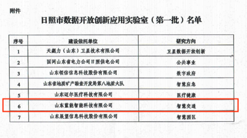 近日,日照市公布了第一批数据开放创新应用实验室名单,山东蓝能智能科技有限公司顺利通过评选。 日照市数据开放创新应用实验室,是为进一步推进我市公共数据深度开放,推动社会数据创新应用,加快培育数据要素市场,激发大数据创新应用,依托市内具有相关研究能力的企事业单位建设一批引领型、创新型的“日照市数据开放创新实验室”。
