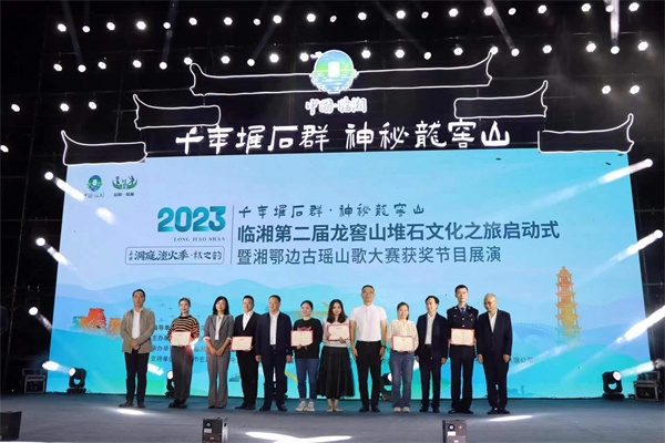 “临”山秀水,“湘”约天下!9月22日,岳阳洞庭渔火季·秋之韵——“千年堆石群 神秘龙窖山”湖南临湘第二届龙窖山堆石文化之旅启动式暨湘鄂边古瑶山歌大赛获奖节目展演,在湖南龙窖山风景名胜区举行。这是临湘推进文旅融合、助力乡村振兴的一大亮点,也是传承优秀传统文化、加深两省情谊的一大举措。