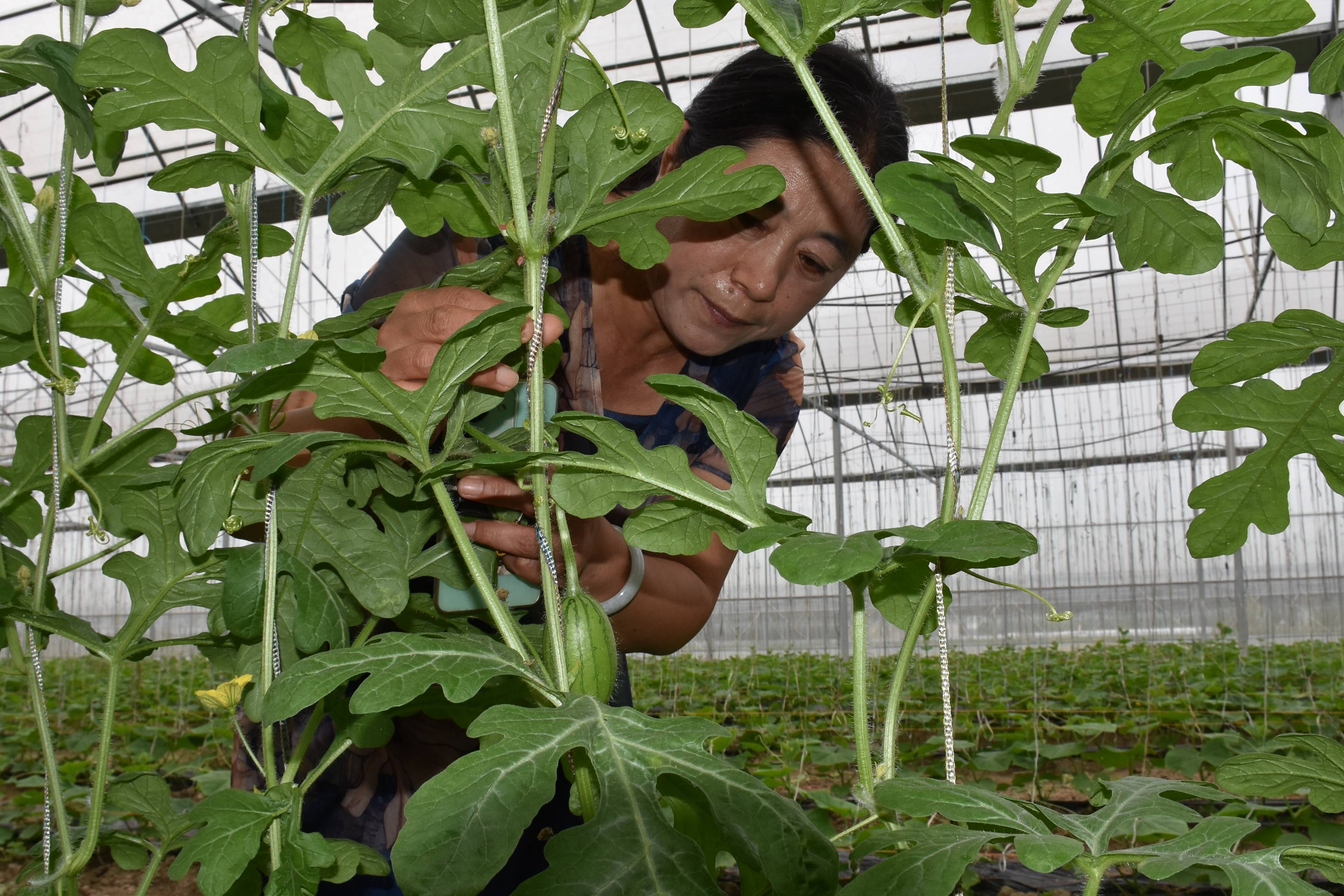 棚栽瓜苗——让人不可思议,而且瓜苗的长势非常的旺,一根主藤顺着牵引绳拼命地往上窜,主藤的中央位置吊着一个个滚圆的西瓜。人们不禁要问:大棚种植的瓜苗生长那么旺,他们是怎么给瓜苗浇水和施肥的?又是怎么给生长一人多高的瓜蔓进行授粉的?