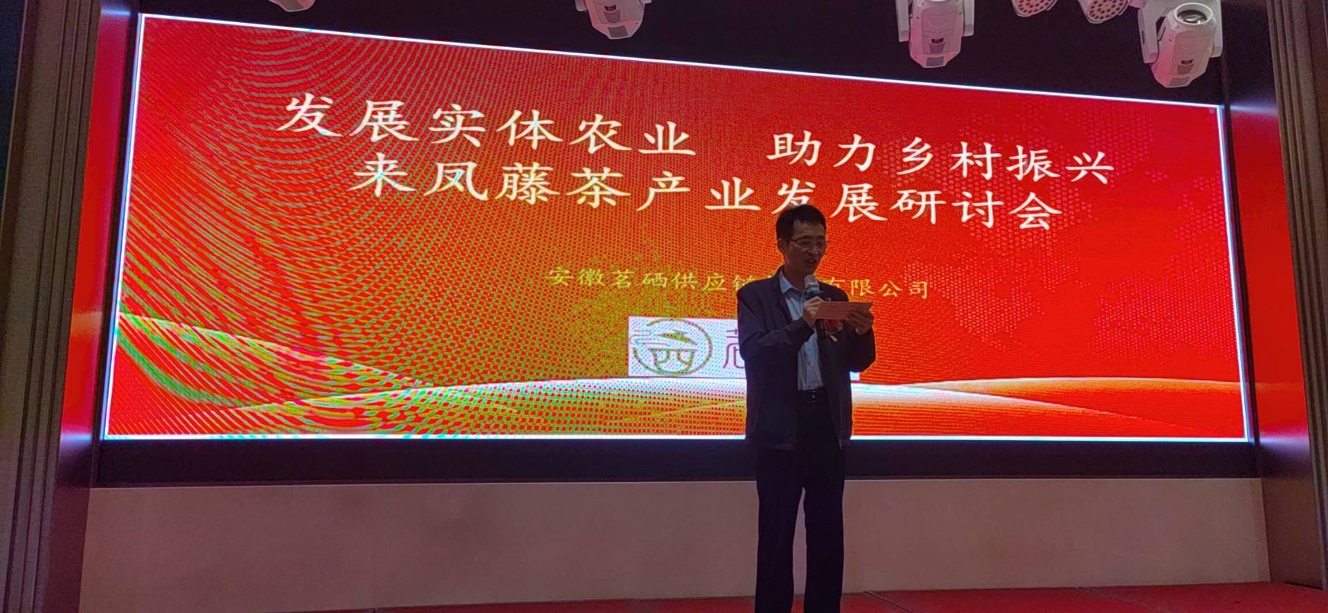 会议首先由安徽茗硒供应链管理有限公司董事长李恩先发表致辞。他热烈欢迎国家一级调研员何国铭先生的到来,并对各级媒体的关注表示衷心感谢。李恩先对安徽茗硒供应链管理有限公司与恩施茗硒公司合作销售来凤藤茶的前景充满希望,与会代理商们也对与茗硒公司藤茶代理合作充满期待。