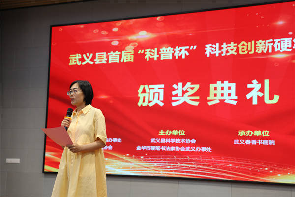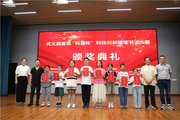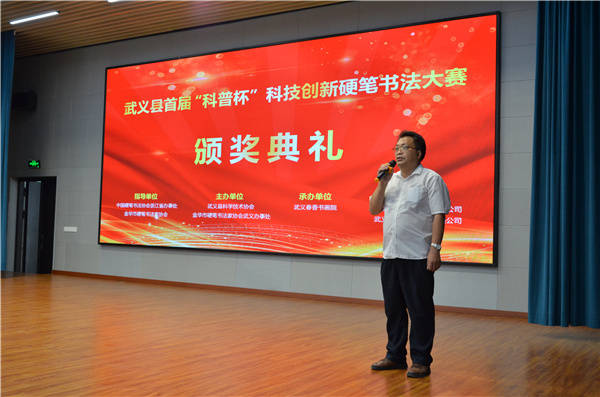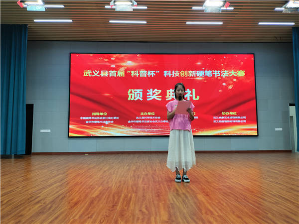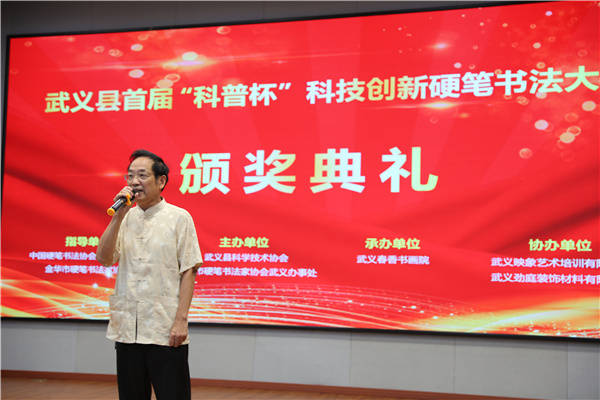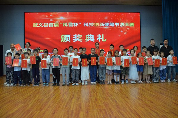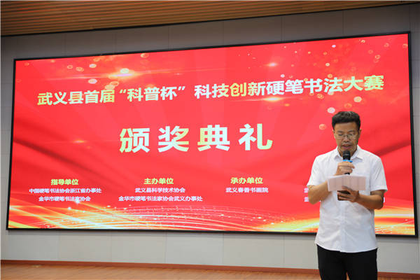 10月5日上午天高气爽,由中国硬笔书法协会浙江省办事处、金华市硬笔书法家协会指导,武义县科学技术协会、金华市硬笔书法家协会武义办事处联合主办,武义春香书画院承办,武义映象艺术培训有限公司、武义劲庭装饰材料有限公司协办的浙江省武义县首届“科普杯”科技创新硬笔书法大赛颁奖典礼,在浙江省现代化学校邵宅小学隆重举行。