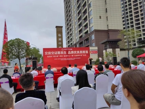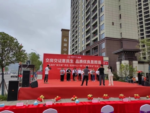 为认真贯彻市委、市政府深化"最多跑一次"改革,优化营商环境的决策部署,推进新建商品房"交房即交证工作"。2023年9月28日,在临湘市“保交楼”项目临湘中心一期“交房即交证”启动仪式上,临湘市委书记王文华等领导为临湘中心一期保交楼项目业主颁发了不动产证,这标志着临湘中心一期保交楼项目365套如期交付,业主喜住新居,临湘市顺利实现保交楼工作.