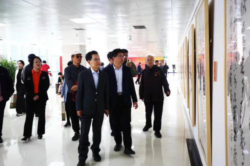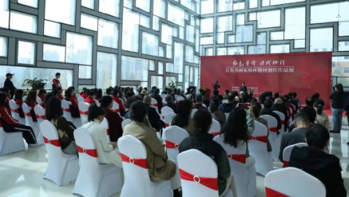 开幕式现场 10月12日,由中共榆林市委宣传部主办,《中国书画》杂志社承办,榆林市文旅局、市文联协办的“红色基因 时代征程——百名书画家榆林题材创作作品展(榆林展)”在榆林市档案馆开展。