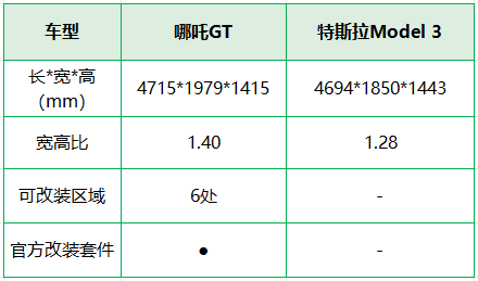 特斯拉Model 3的设计样式,只要对车稍有了解的就都能够一眼认出,整体以简洁干练为主。但随着时间的推移,这样的造型难免有些乏味,缺乏新颖感,即便不久前中期大改款,看上去也只是针对细节上做一些小修正,整体设计并未有明显变化。在哪吒GT面前,不可否认特斯拉Model 3的样貌并未被时代所抛弃,但已经略显疲态,哪吒GT无疑更能让人眼前一亮,迎合年轻消费者的喜好。 对于追求更高玩车乐趣的群体来说,哪吒GT还带来了一个惊喜。10月18日,哪吒GT 560运动版和580运动版上市,出厂自带两大改装套件,不仅外观上更具冲击力,还带来了性能的提升。同时,用户也可以通过售后选装的方式,将这两大套件搭载到其他哪吒GT车型上,自由度、可玩性很高。