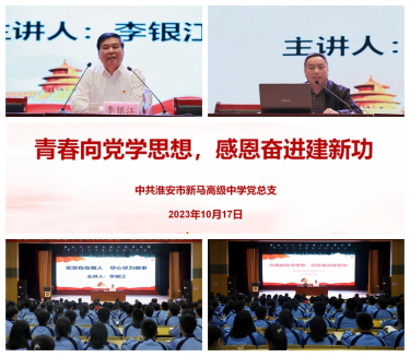 10月17日,党的二十大代表李银江应淮安市新马高中邀请,来校做专题报告,学校关工委成员和1200多名师生聆听。 会上,李银江代表以《实实在在做人,尽心尽力做事》为题,结合自身经历和感悟为大家上生动的一课。他说:“实实在在做人”是立身之本,我们每一个干部和进步青年都要保持政治忠诚,对党忠诚,对人民忠诚;“尽心尽力做事”是成事之要,我们每一个人都要有担当敢作为,全心全意为人民服务。李银江激励师生要勇于承担时代赋予的重任,在无比广阔的舞台上施展才干、实现梦想。