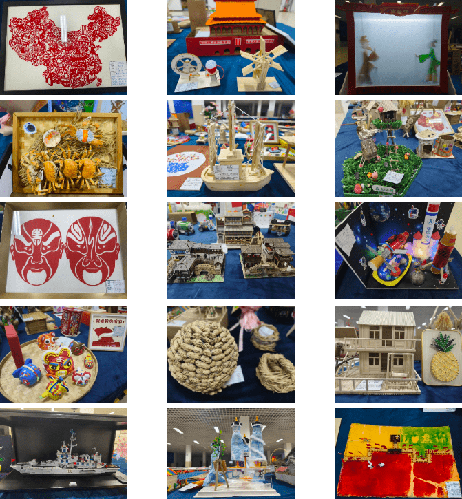 我们可以看到每个作品都是学生们用心制作,充满了创新和思考。不仅展示了学生们的才能和潜力,也激发了全校师生的热情和创造力。