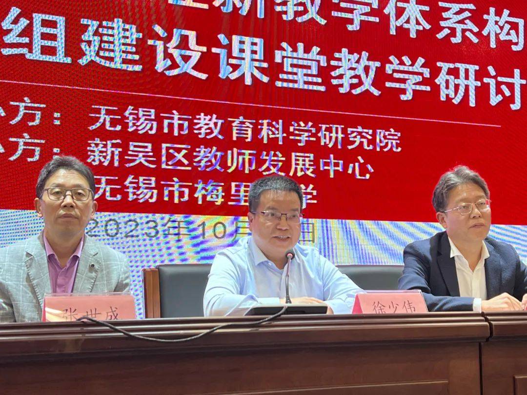 无锡市梅里中学党总支书记徐少伟为本次活动致欢迎辞。徐书记简要地介绍了学校的发展概况和目前的建设情况,对各位与会专家和学员的到来表示欢迎,并预祝此次研讨活动取得圆满成功。