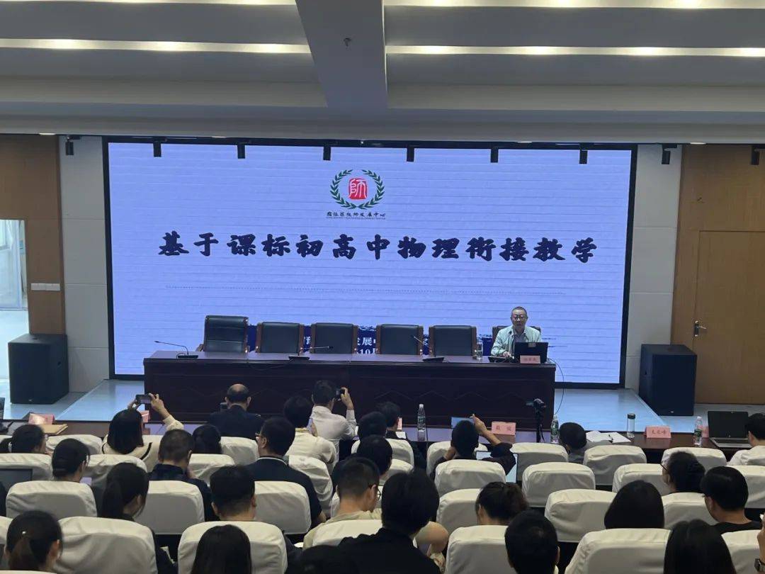随后,正高级教师、宿迁市宿豫区教师发展中心物理研训员张军民,苏州市物理学科带头人、苏州市优秀教育工作者程建军,分别为各位学员做了专题讲座。 张军民老师的讲座《基于课标的初高中物理衔接教学》,强调研读新课标,把握新航向。首先从课标要求开始,带领学员们进行了初高中新课标的核心素养内涵对比;接着,张老师依次从物质、运动和相互作用、能量、实验四个板块进行课程标准导向下的案例分析,并从初高中物理衔接试题分析中,指出现阶段初高中物理衔接存在的问题和解决的策略路径;最后给出了基于课标的初高中物理衔接教学建议,既提升了学员的专业素养,又为目前的初中物理课堂教学指明了方向。