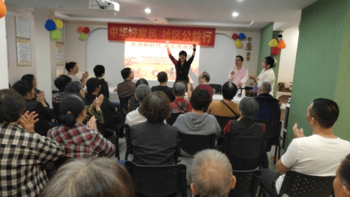 ——记咸嘉湖白鹤咀社区重阳联谊活动 秋风送爽,桂子飘香。10月19日,重阳节前夕,长沙市咸嘉湖街道白鹤咀社区好家风传习馆坐满了社区老人,个个笑逐颜开、神采奕奕,社区居家养老服务站的志愿者在热情地做接待工作。重阳节日的气氛,充满整个社区,浓浓的敬老情,体现在每个与会的人员脸上。由长沙市六礼国辉文化传播有限公司发起的“中华好家风 社区公益行”社区传习公益活动,首次亮相由湖南孝源居家养老服务站主办的咸嘉湖白鹤咀社区重阳节联谊会。