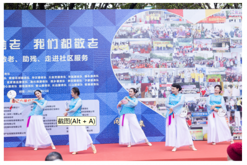 现场,我们还邀请非专业民间舞蹈队的20位爱心演员为老人们带来慰问义演,人虽然一天天老啦,但是他们的精神没有老,他们的理念是:在人生的道路上要忘记自己的年龄,做到健健康康,开开心心,快快乐乐地走下去!直到永远!