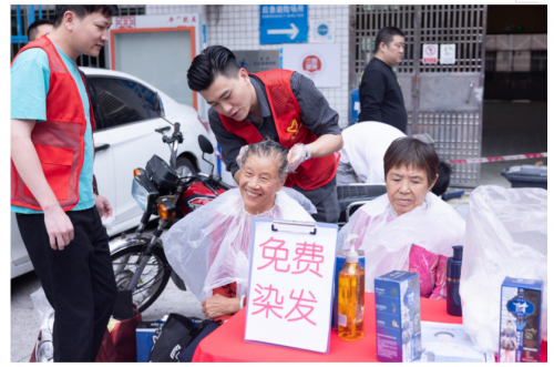 活动中,我们安排了为老人们染白头发,这是一个非常有爱和有趣的活动!为老人染白头发是一种表达敬意和关爱的方式。我们向老人们致敬,表达我们对他们智慧和经历的尊重。这个活动不仅可以提升老人们的自尊心,也可以带给他们更多的快乐和关怀。让我们一起动手,为老人们染白头发,给他们带来美好的回忆和温暖的时刻!