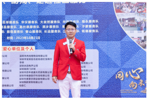 大会主席曾文亮狮兄介绍出席本次活动的领导嘉宾和各参与承办协办及赞助支持单位感谢所有到场支持的领导嘉宾,以及深圳狮子会各协办服务队和社会爱心企业。